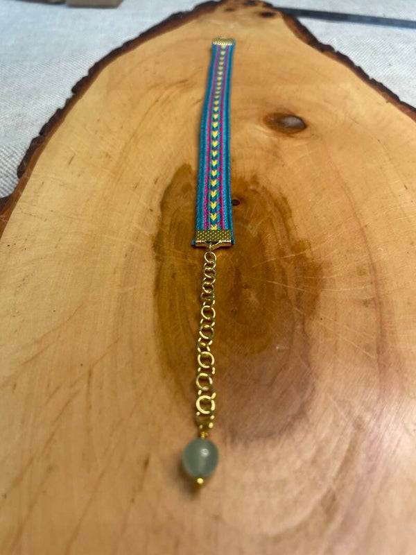 Die Bänder sind von mir Hand gewebt (Brettchenweben). Auch wenn manche Bänder das gleiche Muster vorweisen, so ist doch jedes ein Unikat. Ebenso werden Verschlüsse und Edelsteine von Hand angebracht und jedes Band wird liebevoll verpackt. Daher würde ich mich freuen, wenn Du Dich über eventuelle Unperfektheiten eher freust als ärgerst, denn hier hat ein Mensch in Liebe und Hingabe gearbeitet und keine Maschine :)