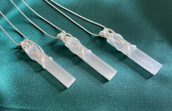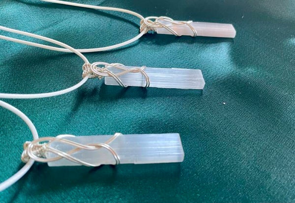 Handgemachte Heilstein Halskette aus rohem Selenit