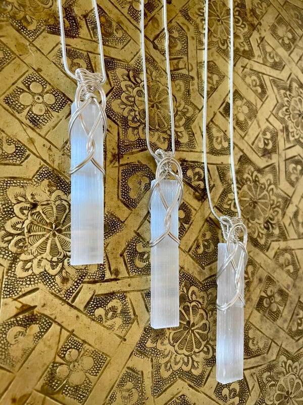 Entdecke die natürliche Eleganz dieser einzigartigen handgemachten Kette aus rohem Selenit.