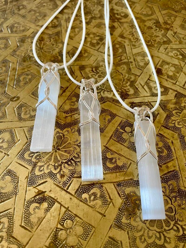 Selenit Halskette handgemacht | Schutz- und Heilstein | Roher Kristall mit Leder- oder Silberkette | Spiritueller Schmuck
