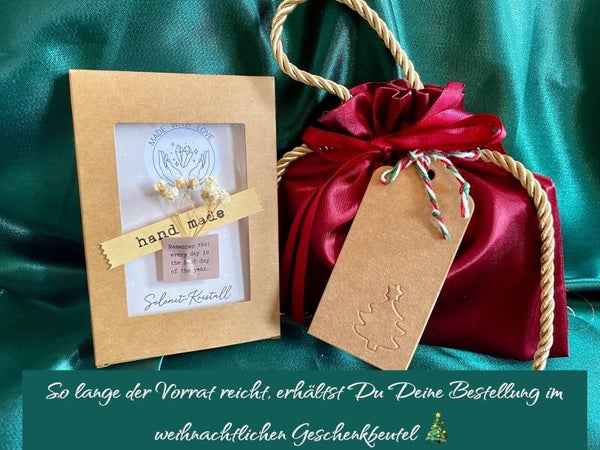 Jeder Anhänger ist kunstvoll mit Draht, Edelstahl-Elementen und zarten Selenitkugeln verziert, die für einen modernen und zugleich natürlichen Look sorgen. An einem Schmuck-Band befestigt, kannst du ihn ganz einfach an deinem Weihnachtsbaum, im Fenster oder an anderen besonderen Orten aufhängen, um dein Zuhause festlich zu dekorieren.